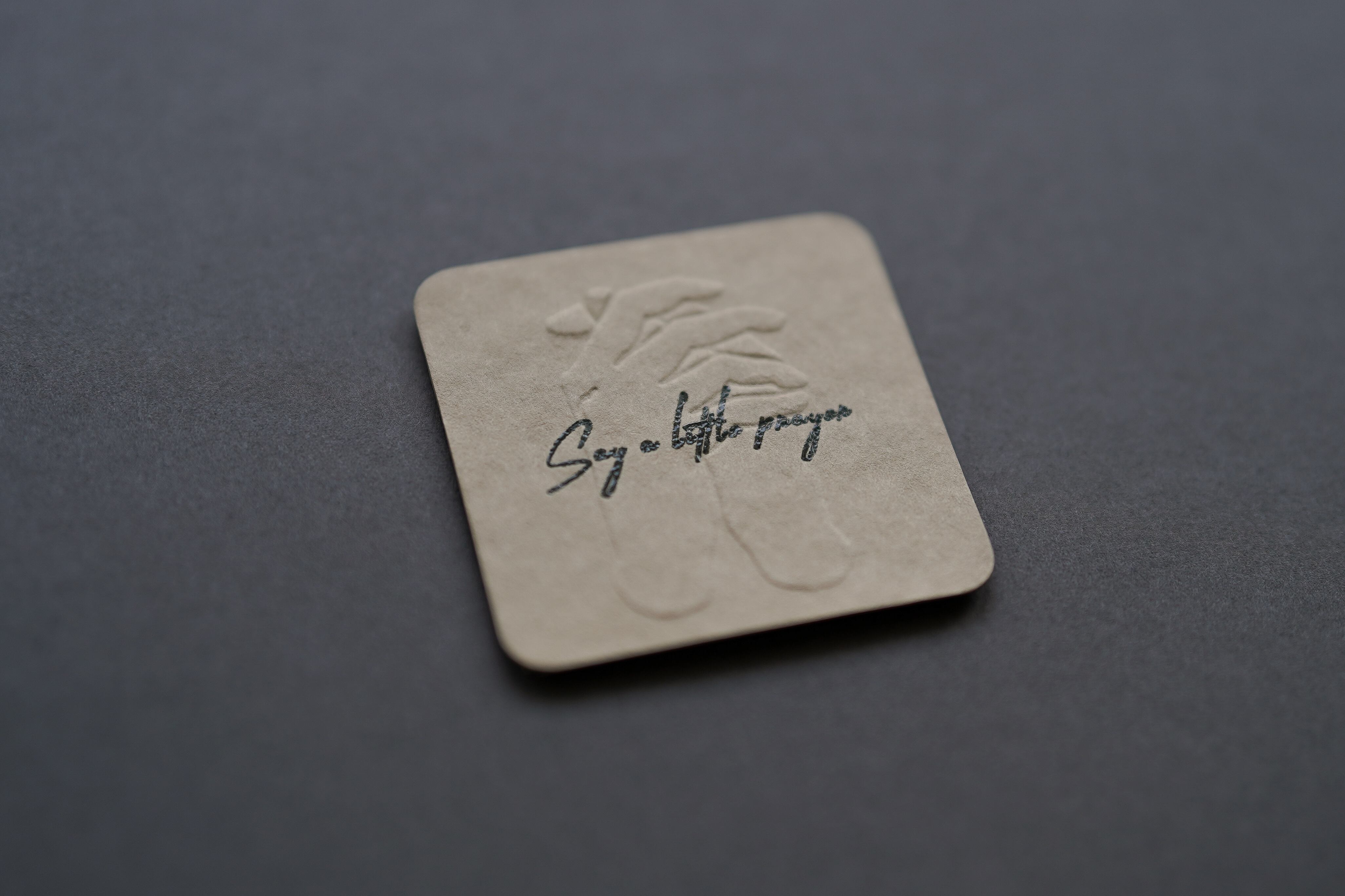 Say a little prayer にはエンボスで2人の人が手を重ね合わせて祈るイラストを入れています。